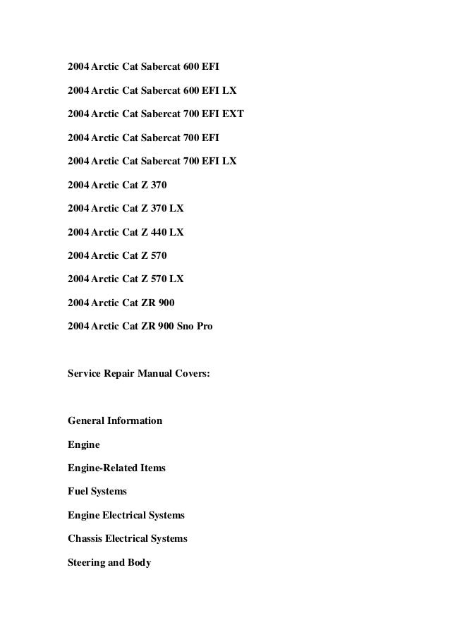 2004 Arctic Cat Snowmobile Service Repair Workshop Manual