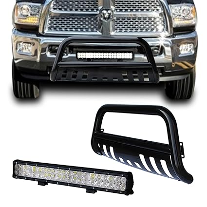 Tuokiy Black Bull Bar Bumper Grille Guard With Removable Skid Plate 4d Lens 126w Led Light Bar Wiring Harness 02 08 Dodge Ram 1500 Bull Bar 126w